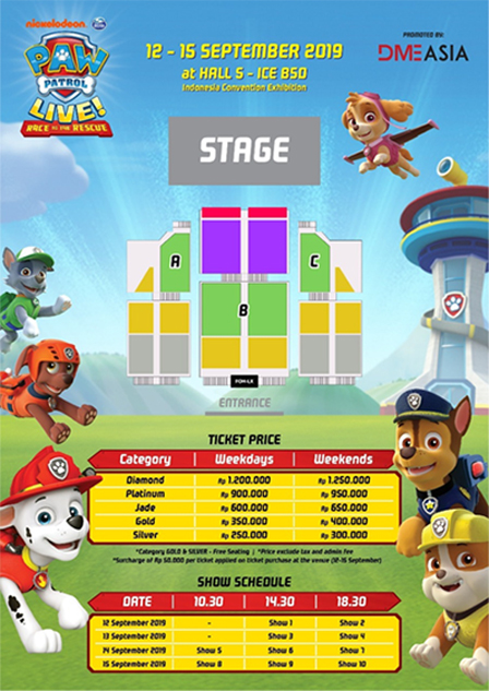 JAKARTA, 3 Juli 2019 - Berdasarkan serial TV animasi populer di Nickelodeon yang diproduksi oleh Spin Master Entertainment, PAW Patrol Live! "Race to the Rescue" akan datang ke Indonesia dengan tur baru mereka, yang membawa Pups! favorit semua orang ke panggung untuk petualangan musik yang penuh aksi dan energik. Ketika Walikota Goodway hilang selama The Great Adventure Bay Race, para Pups! datang untuk menyelamatkan. Bergabunglah dengan Ryder, Chase, Marshall, Rocky, Rubble, Zuma, Sky, dan Everest untuk tur yang pertama di Indonesia, yang akan diadakan tepatnya di Indonesia Convention And Exhibition (ICE) BSD City, 12 - 15 September 2019. Tiket sudah dapat di beli di hari Kamis, 4 Juli 2019 pukul 14:00 wib di official ticketing partner kami www.tiket.com